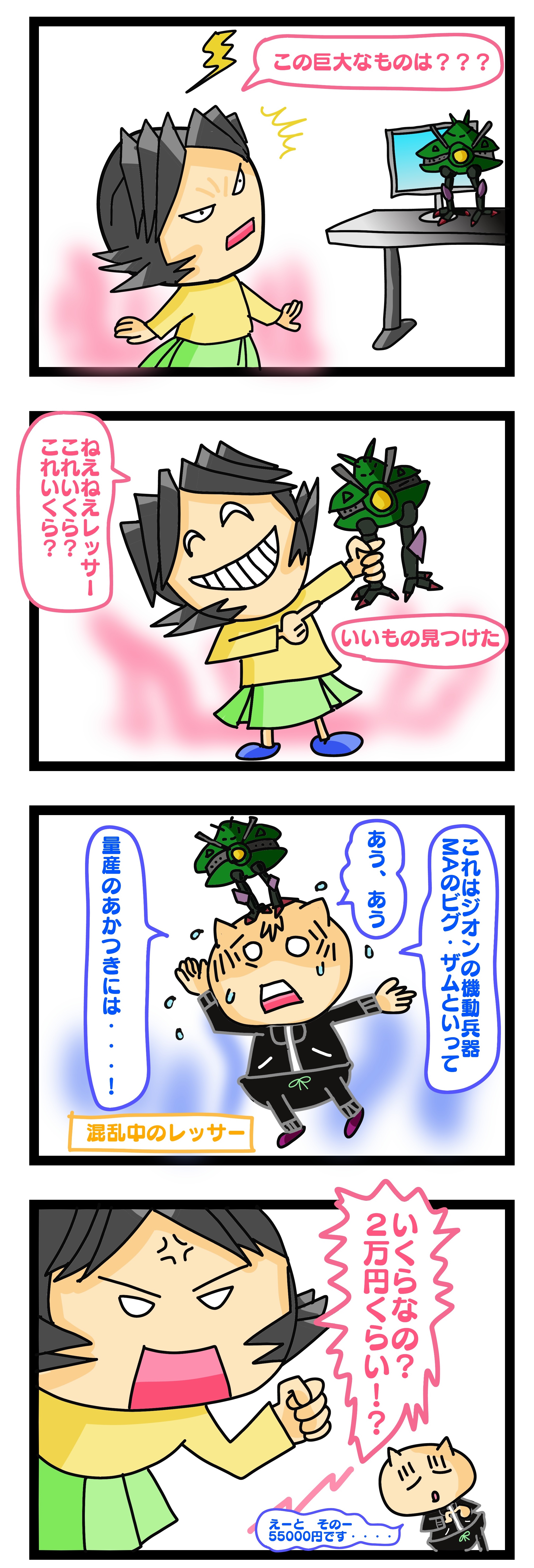 なにかと話題のビグザム(ロボット魂)と勝ち誇った妻の顔 | カピー&レッサー はい。大きな声でもう一度言って 5万5千円です・・・ えっえっよく聞こえない~ 5万5千円です・・・ (だんだん声が小さくなってきたな) え~聞こえないこれのことだ…